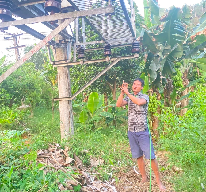 Đối tượng Tuyện thực hiện lại hành vi trộm cắp thiết bị, linh kiện điện lưới. Ảnh Công an Lào Cai.