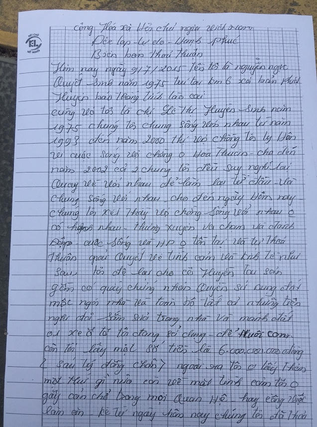 Thời gian cứ thế trôi đi những trận đòn roi vẫn cứ tiếp diễn xảy ra thường xuyên với tôi… Rồi tôi không thể chịu đựng đã quyết định đưa đơn ra tòa án huyện Bảo Thắng vào năm 2002, vì chúng tôi không đăng ký kết hôn nên tòa án huyện Bảo Thắng mới xử và chia tài sản cho vợ chồng tôi và không công nhận chúng tôi là vợ chồng”, chị Huyền tâm sự