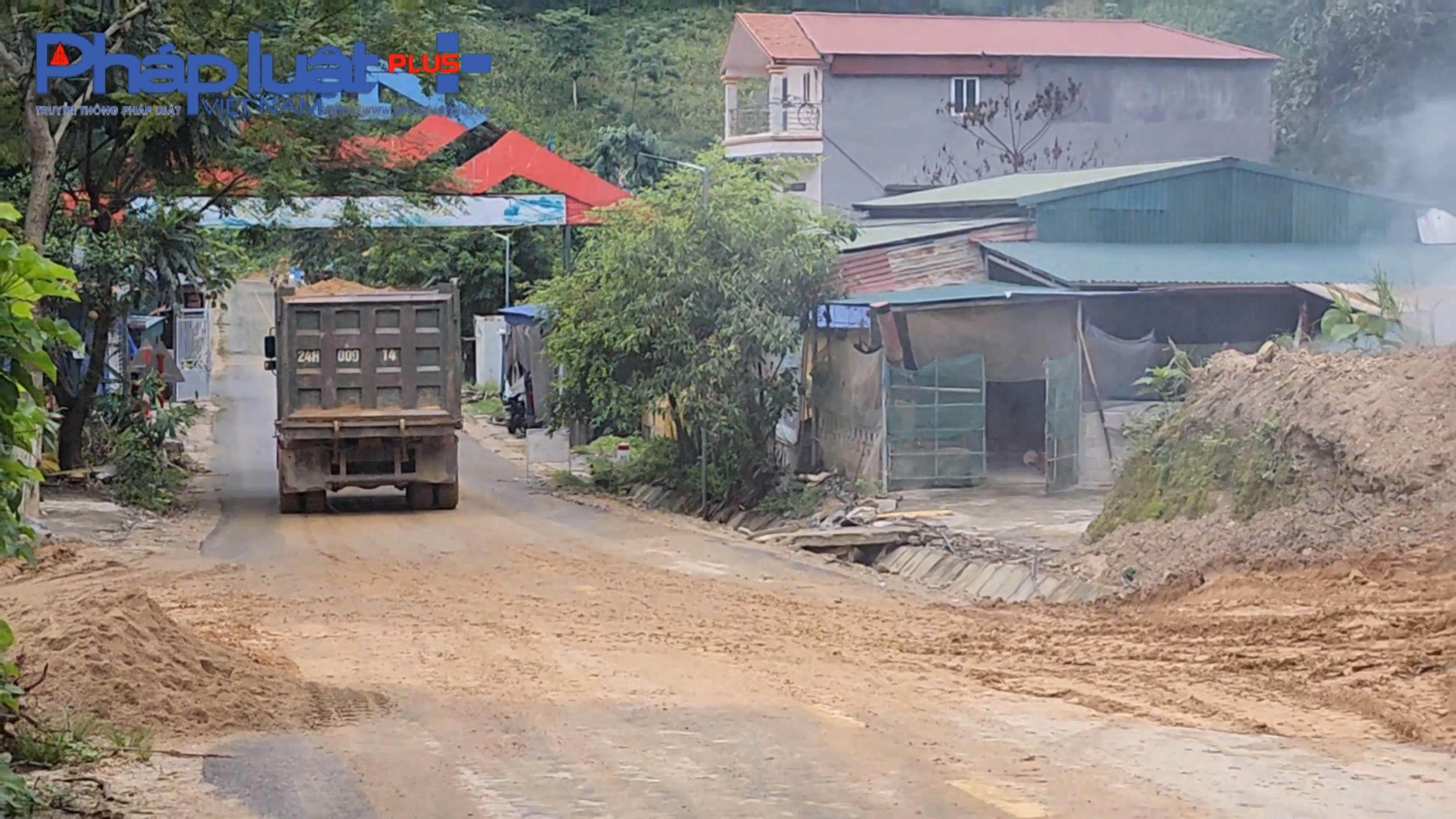 Đất đá được khai thác vận chuyển trái phép tới một công trình thuỷ điện, gây nguy cơ sạt lở, mất an toàn giao thông và ô nhiễm môi trường.