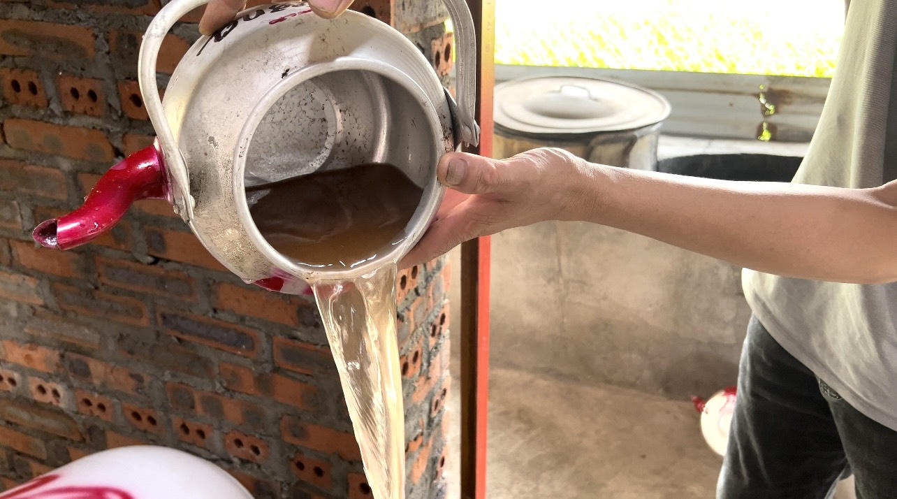 Nước thì vàng khè, để một lúc là đóng cặn. Lợn đang khỏe mạnh mang đến đây nuôi nhốt chỉ 1- 2 hôm là bị tiêu chảy ảnh hưởng rất lớn tới kinh tế.
