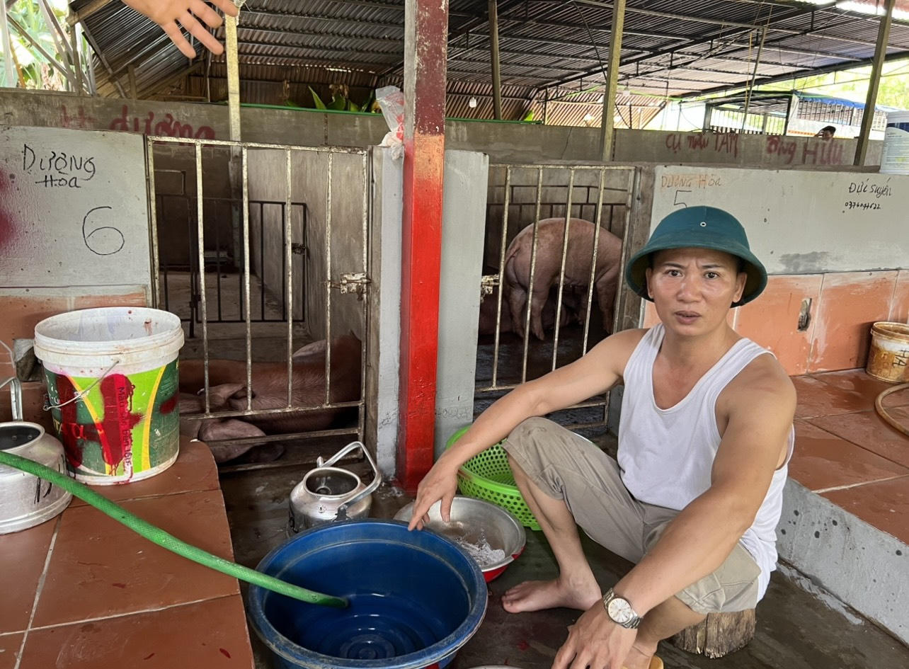 Vì vốn bỏ ra lớn nên tôi vẫn phải thực hiện mổ lợn để bán thu hồi vốn, cán bộ kiểm dịch cũng có mặt và đóng dấu cho tiêu thụ.