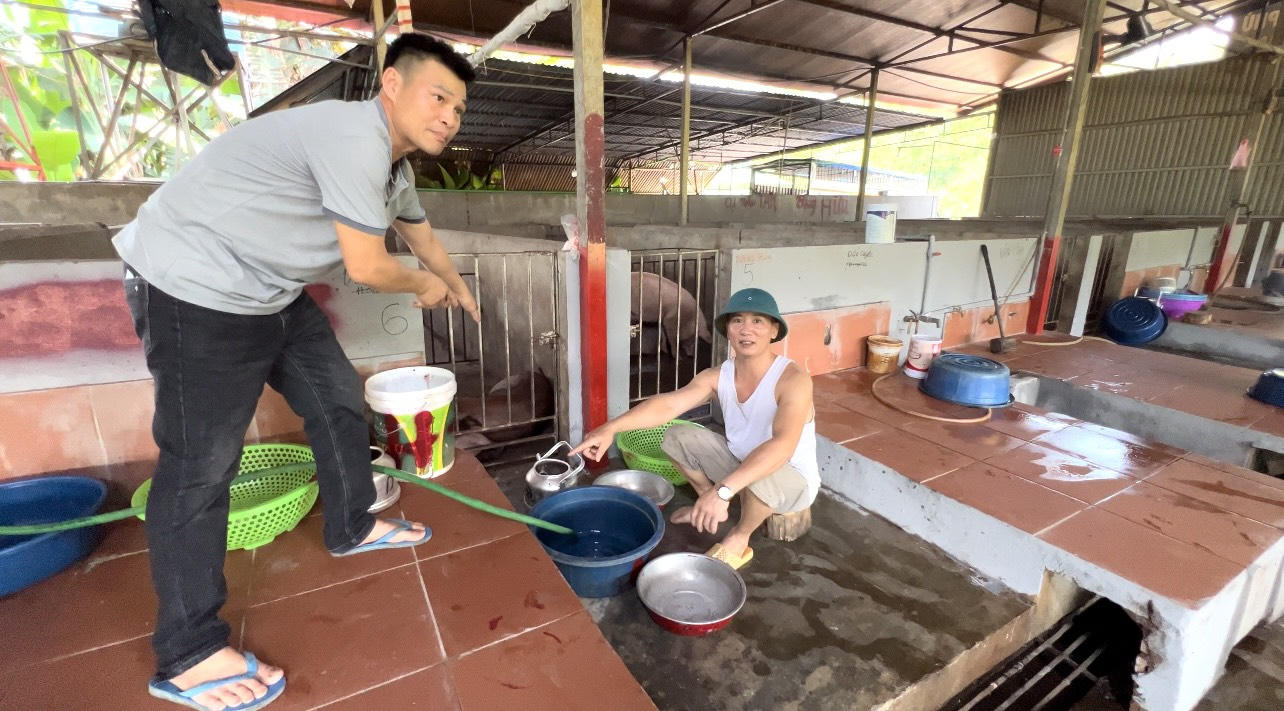 Hơn nữa, cả chục hộ mổ lợn tại đây mà chỉ có một ống nước bé tý, toàn phải vừa làm vừa đợi nhau, còn chưa kể đến việc mới hoạt động lại 3 ngày nay mà hệ thống lò hơi nấu nước sôi đã trục trặc, chúng tôi không có nước nóng để làm lại phải nhà nào về nhà đó lấy nước sôi để sử dụng.