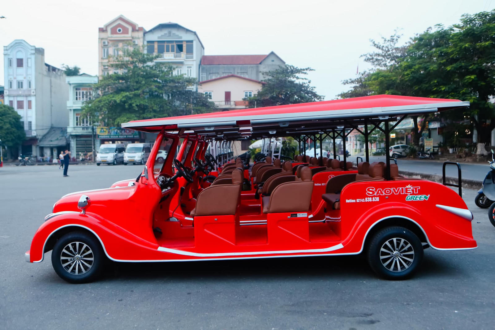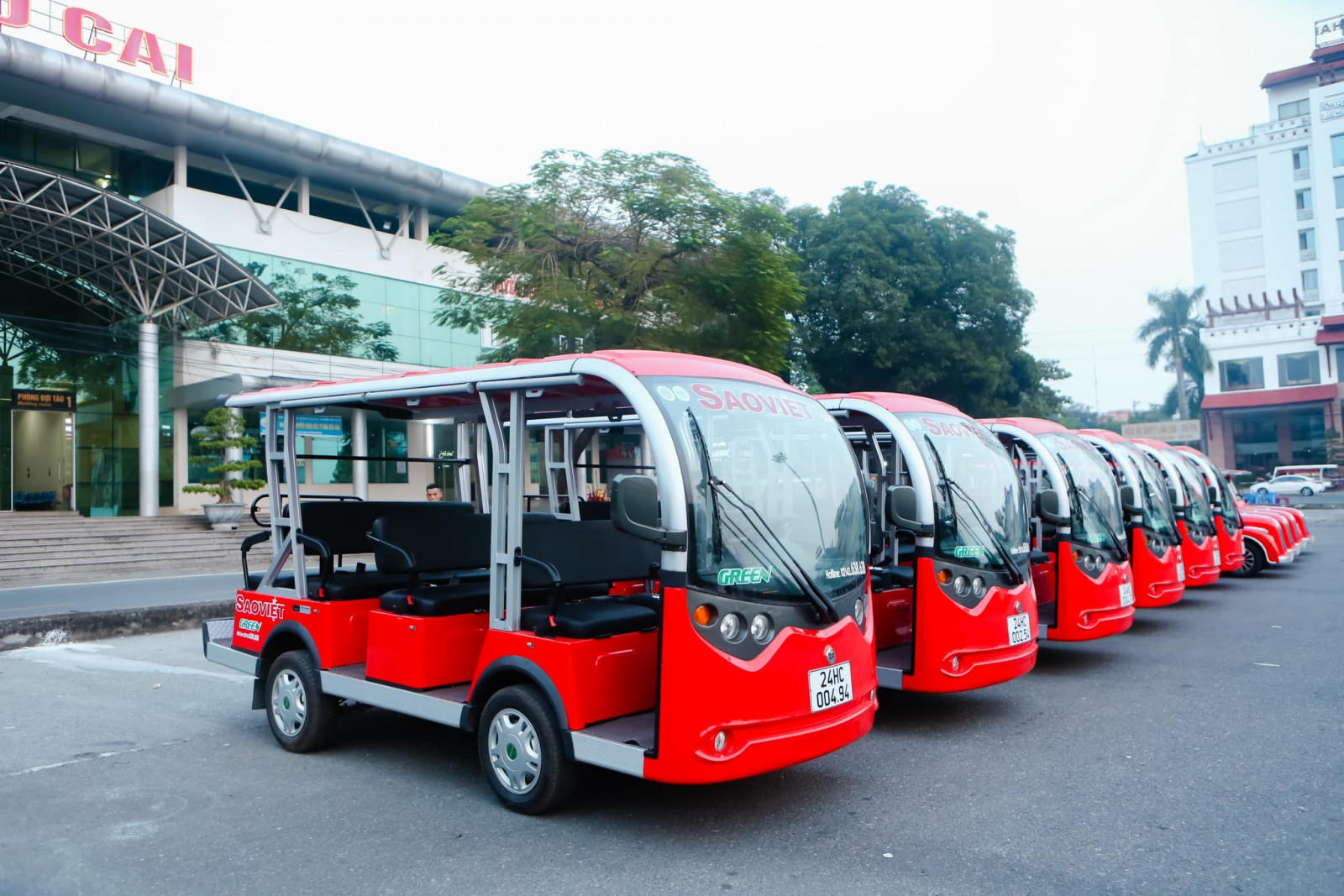 Dàn xe điện của Hãng xe Sao Việt với hơn 30 chiếc vừa được đưa vào hoạt động. Mỗi xe có thể chở hơn 10 người/lượt. Đây cũng là chiến lược nằm trong chương trình du lịch xanh nhằm hướng tới mục tiêu bảo vệ môi trường Xanh - Sạch - Đẹp.