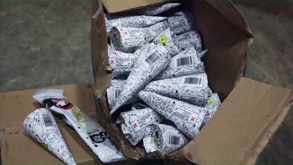 Theo đó, vào khoảng 20h, ngày 12/4, Phòng Cảnh sát môi trường, Công an tỉnh Lào Cai đã phối hợp với Đội Quản lý thị trường số 1, đội kiểm soát Hải quan tỉnh Lào Cai đã phát hiện, thu giữ 310 thùng hàng chứa 12.400 que kem không rõ nguồn gốc xuất xứ.