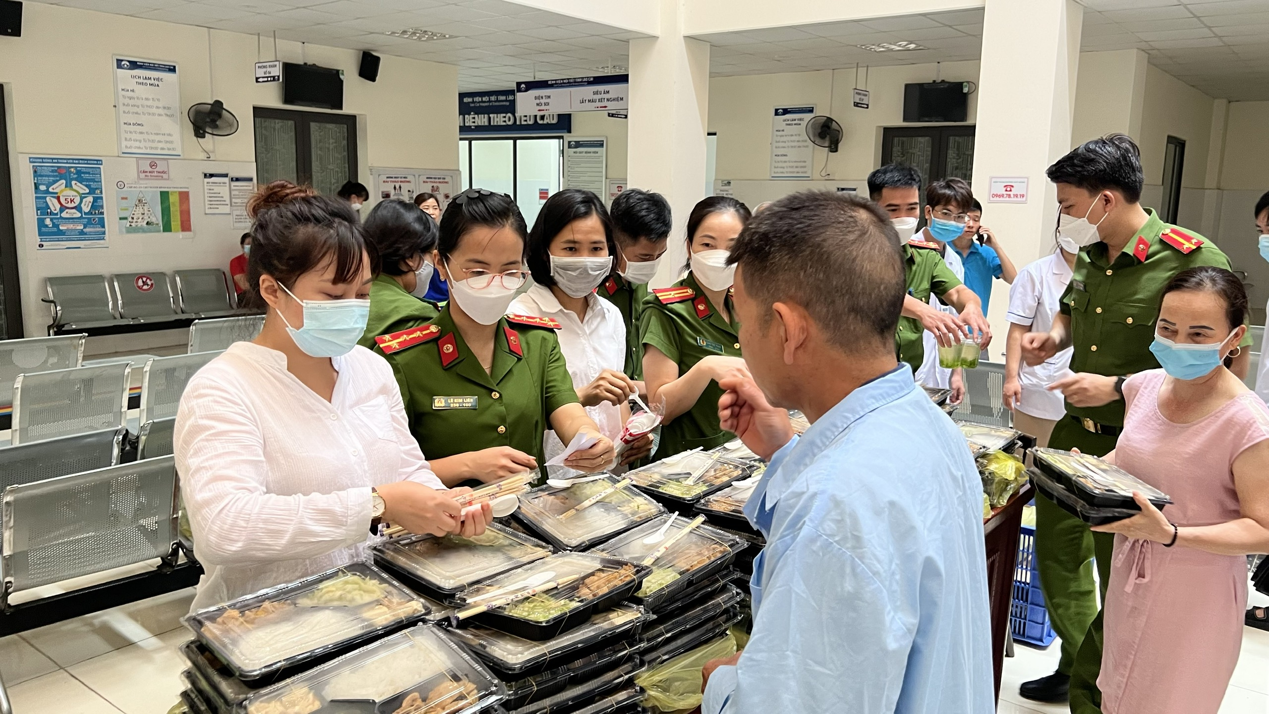 Ghi nhận tại Bệnh viện Nội tiết tỉnh Lào Cai, sáng nay 27/5/2023, Đoàn thanh niên - Hội phụ nữ Công an thành phố cùng các nhà hảo tâm đã gửi tặng hơn 100 suất ăn nhân ái đến các bệnh nhân và người nhà bệnh nhân có hoàn cảnh khó khăn đang điều trị tại Bệnh viện