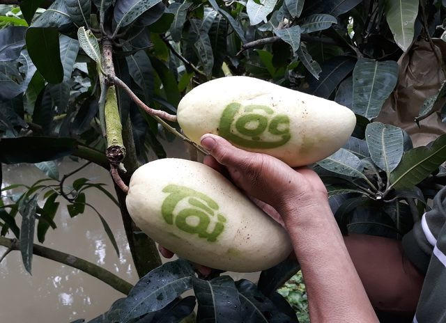 Anh Bùi Văn Thức ở ấp Phú Hòa, xã Đông Phú (Châu Thành, Hậu Giang) cũng khoe, vụ Tết này anh cung ứng ra thị trường hơn 1.000 trái xoài thư pháp.