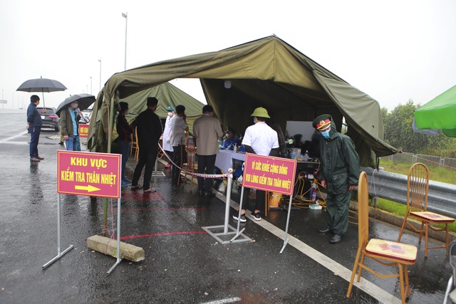 Còn tại trạm thu phí Bạch Đằng (cao tốc Hà Nội - Hải Phòng - Quảng Ninh), lực lượng CSGT phối hợp với quân đội, nhân viên y tế… thuộc TP Quảng Ninh tiến hành kiểm tra 100% phương tiện cá nhân, xe tải di chuyển qua trạm.