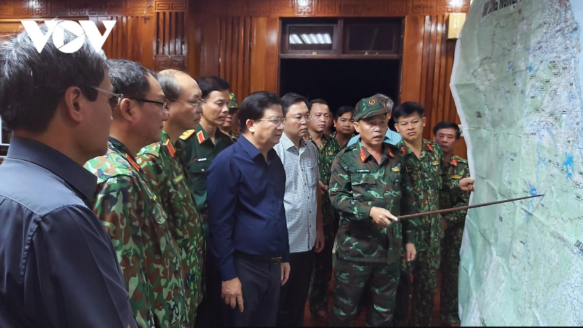 Phó Thủ tướng Trịnh Đình Dũng nghe cơ quan chức năng trình bày phương án tìm kiếm nạn nhân mất tích