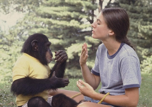 Nim được tình nguyện viên Joyce Butler dạy ngôn ngữ ký hiệu. (Ảnh: Daily Mail)