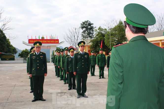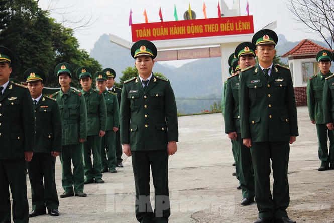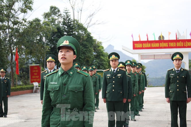 Sáng mùng 1 Tết cán bộ, chiến sĩ và học viên ở đồn biên phòng Quang Long (huyện Hạ Lang, tỉnh Cao Bằng) thực hiện lễ "Chào cờ chủ quyền" thiêng liêng.