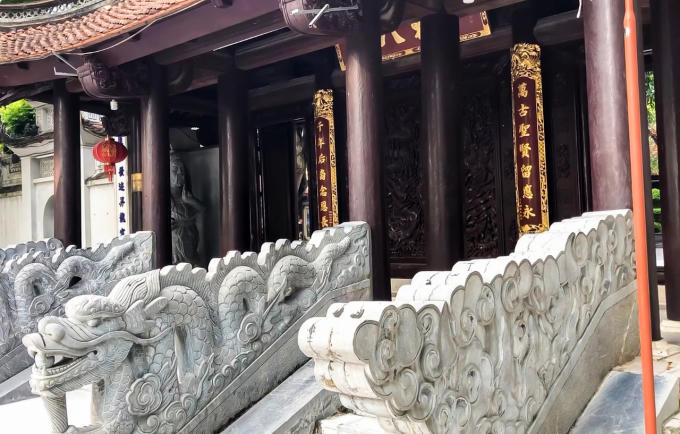 Cổng "Ngũ long môn" tại lối vào khu đền nội với 5 bức chạm khắc rồng bằng đá.