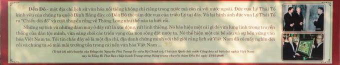 Ngày 21/1/2009, Tổng Bí Thư Nguyễn Phú Trọng đã về thăm và dâng hương tại Đền Đô.