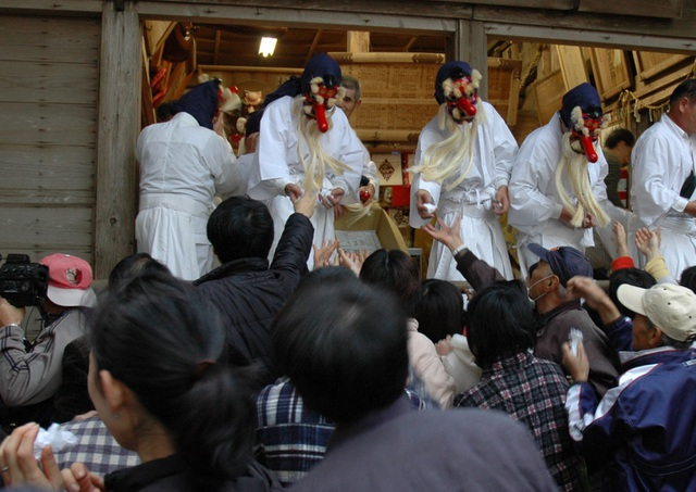 Các món đồ cúng được các thầy tế phát tại các ngôi đền được coi như những vật may mắn mang đến sức khỏe, bình an. Vì vậy, đám đông chờ tới khi thầy tế kết thúc cầu nguyện rồi bắt đầu hô vang những lời chửi rủa và tranh cướp đồ cúng với mong ước có được sức khỏe dồi dào, gia đình được bình yên, mùa màng bội thu trong năm mới.