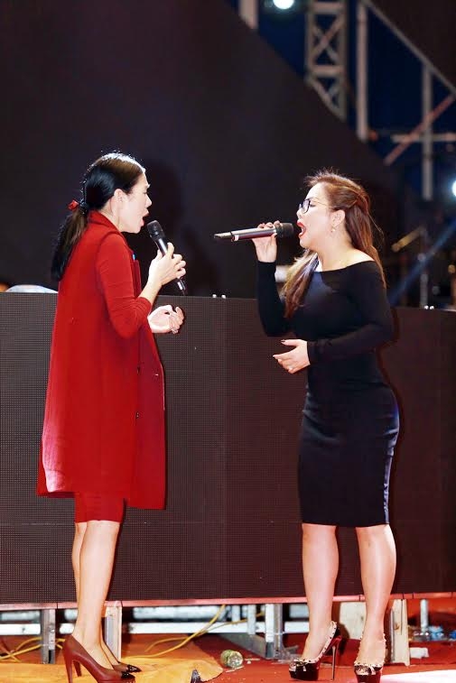 Ca sĩ Minh Tuyết cũng có mặt từ sớm và chăm chỉ tập luyện các tiết mục đơn ca. Ngoài những bản hit sôi động nữ khách mời nóng bỏng Minh Tuyết còn có phần song ca ngọt ngào cùng Lệ Quyên.