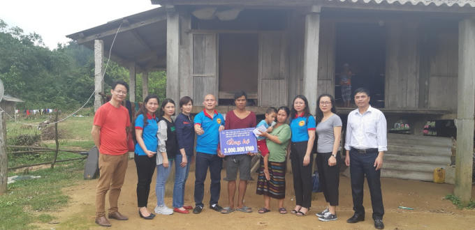 Các thành viên lớp K69.B27 trao hỗ trợ 3 triệu đồng đến với gia đình có hoàn cảnh khó khăn tại huyện Lệ Thủy, tỉnh Quảng Bình.
