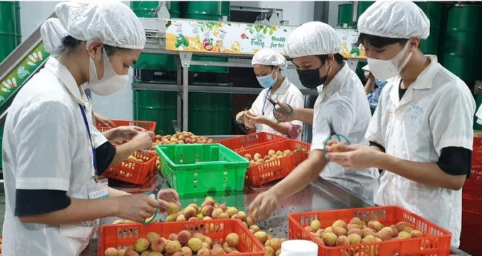 Sơ chế vải thiều sớm Tân Yên trước khi xuất khẩu. Ảnh Báo Bắc Giang