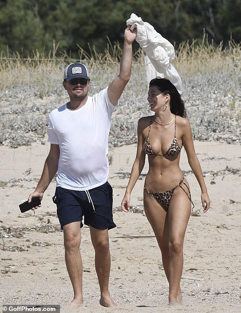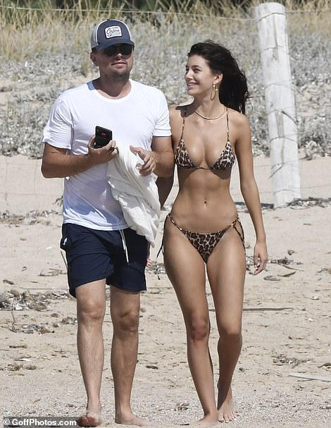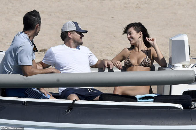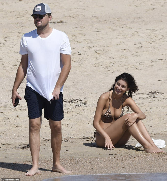 Trong khi đó, bạn gái kém 22 tuổi của Leonardo DiCaprio lại thả dáng thon, gợi cảm với bikini họa tiết da báo ấn tượng.