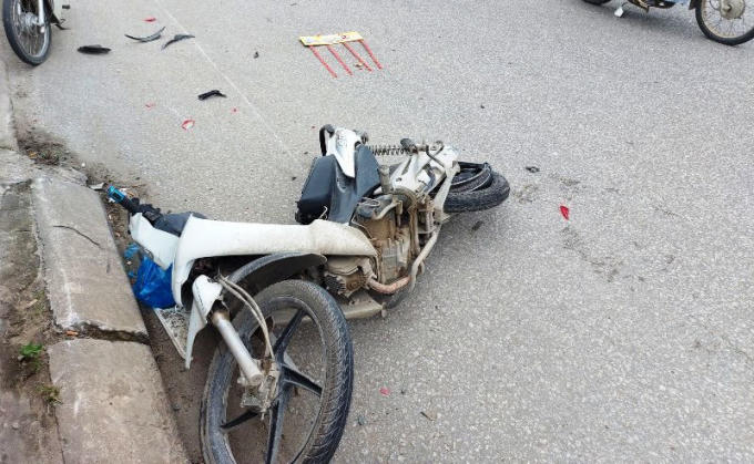 Một chiếc xe máy hư hỏng nặng sau cú va chạm.