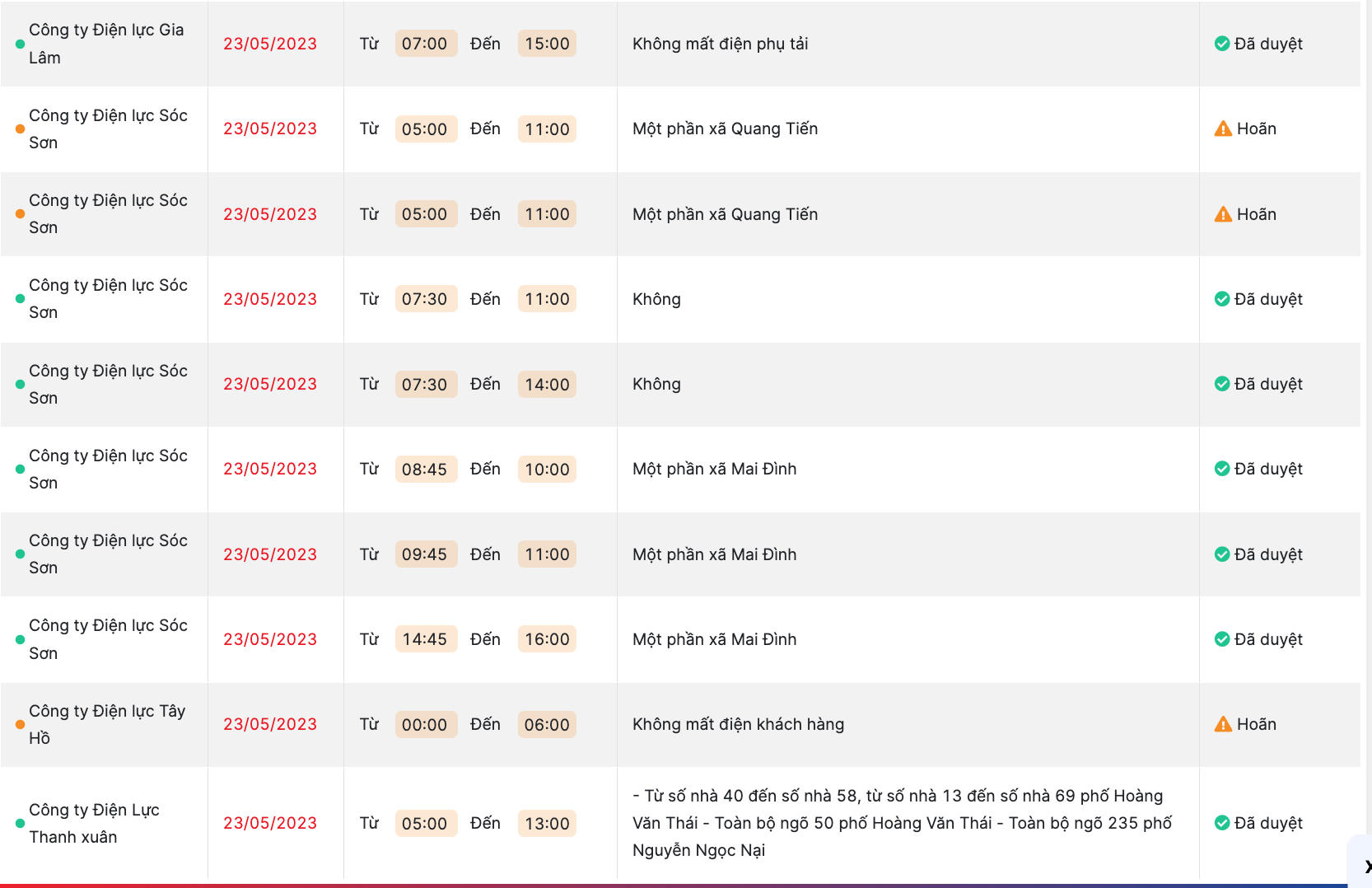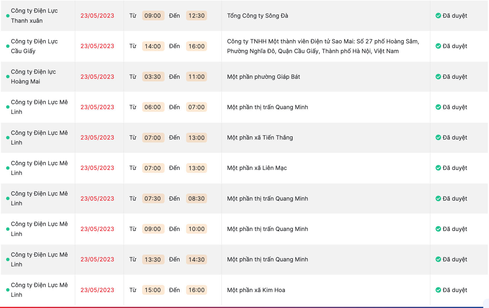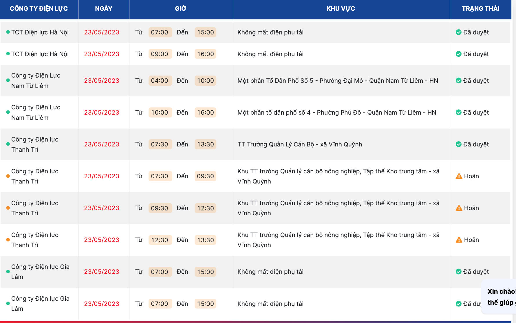 Lịch cắt điện Hà Nội ngày mai 23/5 được cập nhật mới nhất tại website của Tổng công ty Điện lực TP. Hà Nội: https://evnhanoi.vn/search/power-cut