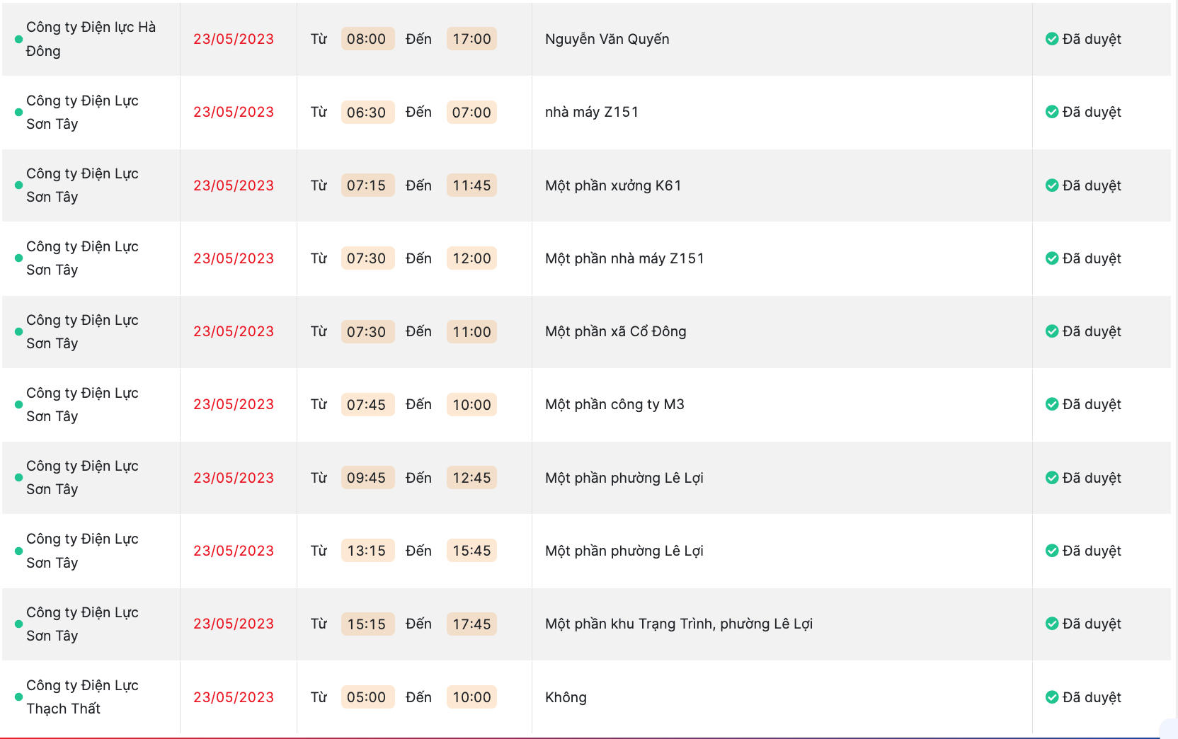 Tổng Công ty Điện lực TP. Hà Nội (EVNHANOI) vừa có thông báo về lịch cắt điện trên toàn thành phố trong ngày 23/5.