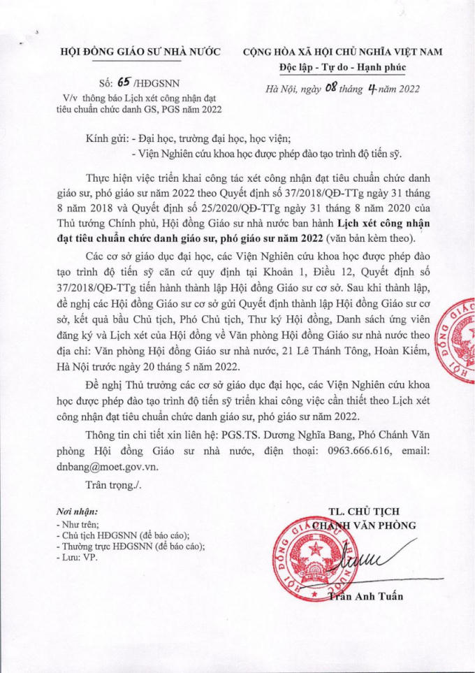 Lịch xét tiêu chuẩn Giáo sư, Phó Giáo sư năm 2022