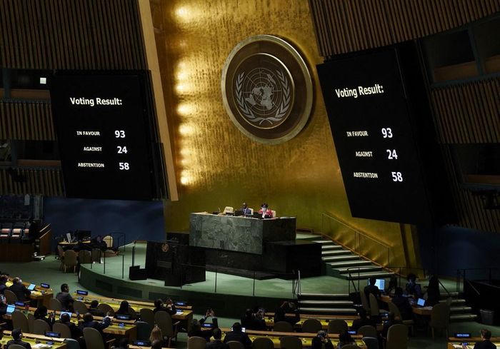 Trong lần bỏ phiếu do Mỹ thúc đẩy này, có 93 phiếu thuận, 24 phiếu chống, và 58 nước bỏ phiếu trắng, theo Reuters.