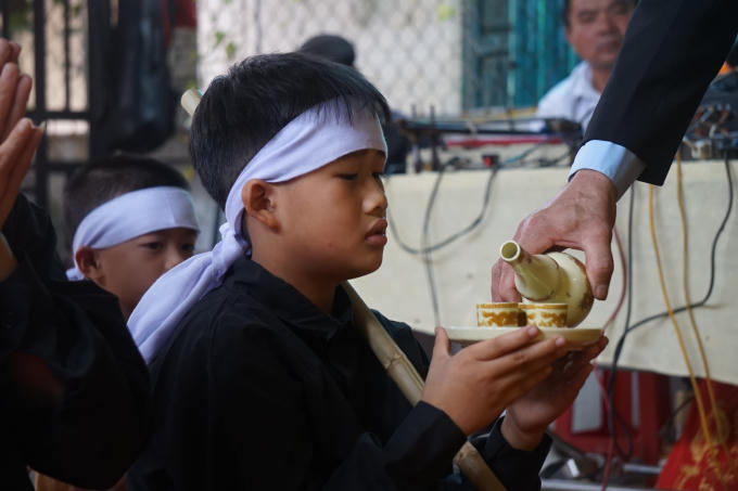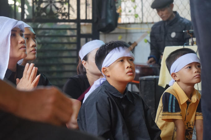 Con của các liệt sỹ Đoàn 337 phần lớn vẫn còn quá nhỏ, nhưng trên đầu đã đội vành khăn trắng chịu tang cha khiến nhiều người không cầm được nước mắt.