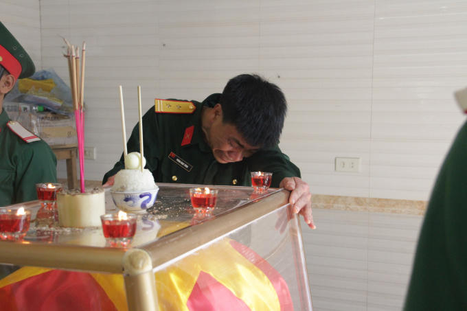 Người chú ruột cũng là một quân nhân khóc nghẹn tiễn biệt cháu mình.