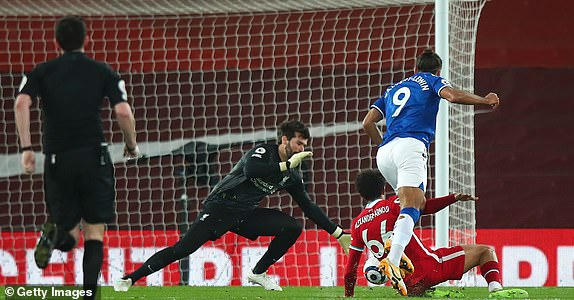 Miệt mài tấn công hòng tìm kiếm bàn gỡ nhưng không được, Liverpool phải trả giá ở phút 81. Từ một đợt phản công nhanh, Calvert-Lewin băng xuống dứt điểm khiến Alisson phải đẩy bóng. Tiền đạo người Anh tiếp tục băng lên đá bồi nhưng vấp vào Alexander-Arnold và ngã ra sân.
