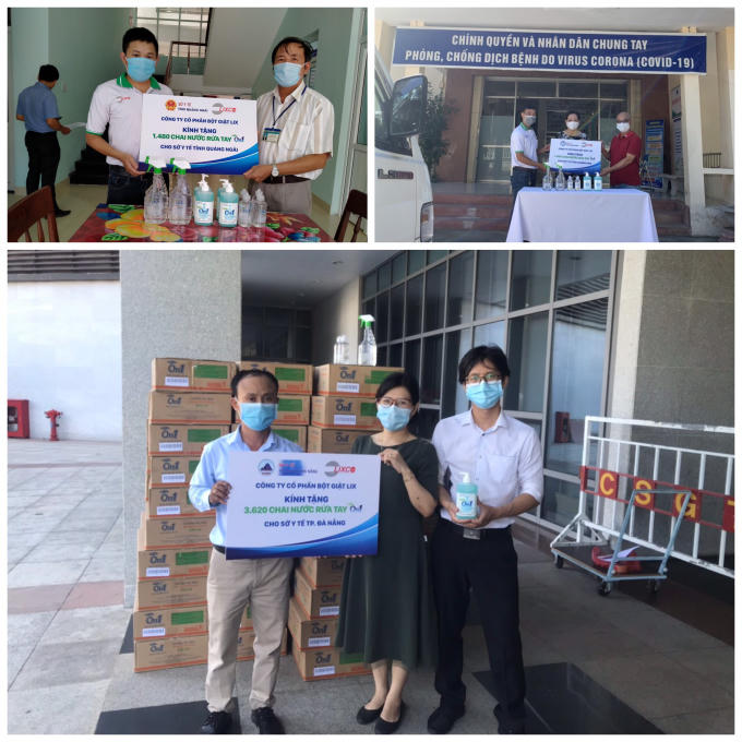 Lixco đã kịp thời trao tặng hơn 2.000 lít sản phẩm bao gồm: Dung dịch rửa tay khô, gel rửa tay khô và nước rửa tay On1 cho Sở Y tế ba tỉnh thành Đà Nẵng, Quảng Nam và Quảng Ngãi vào ngày 29/7 vừa qua.