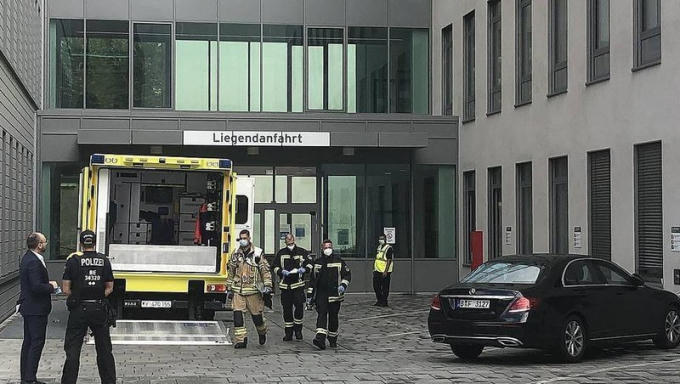 Bên ngoài phòng khám Charite (Đức) nơi ông Navalny được đưa đến điều trị.