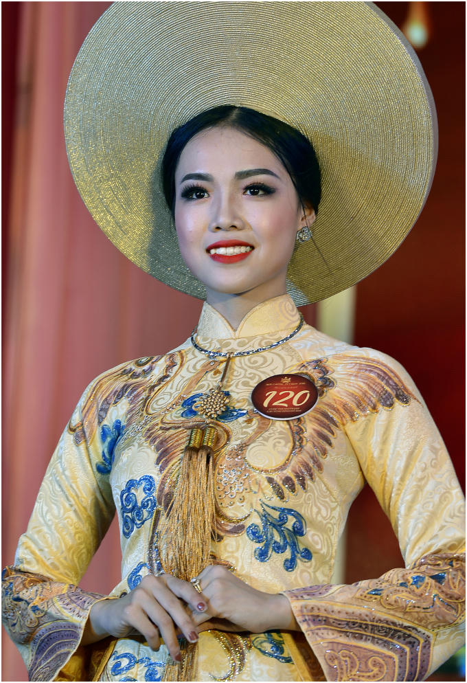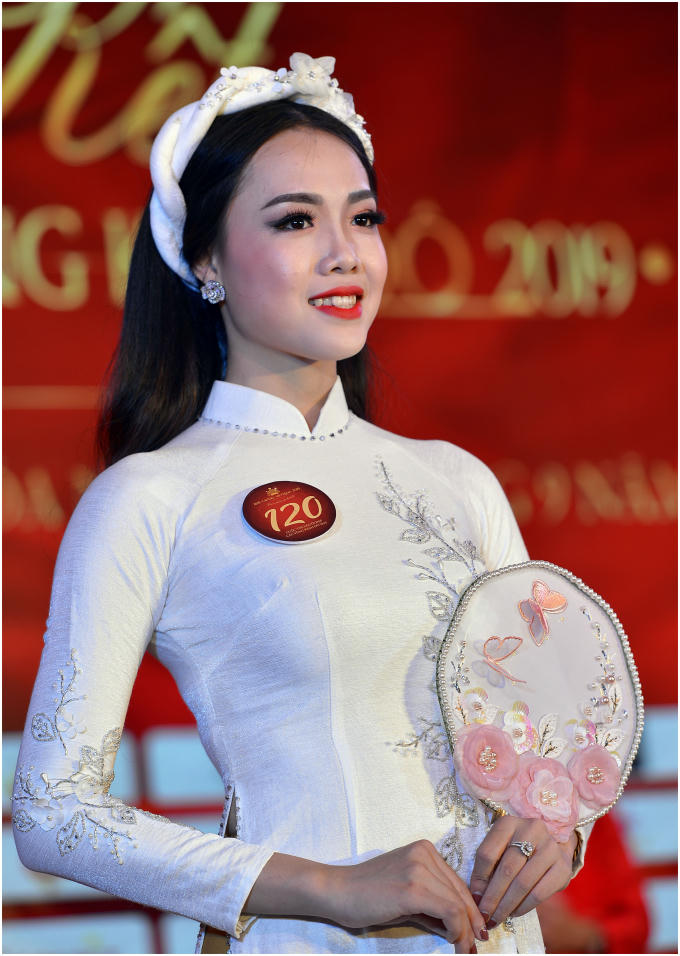 Thí sinh Lê Ngọc Khánh Vi đến từ Huế tự tin trong trang phục áo dài.