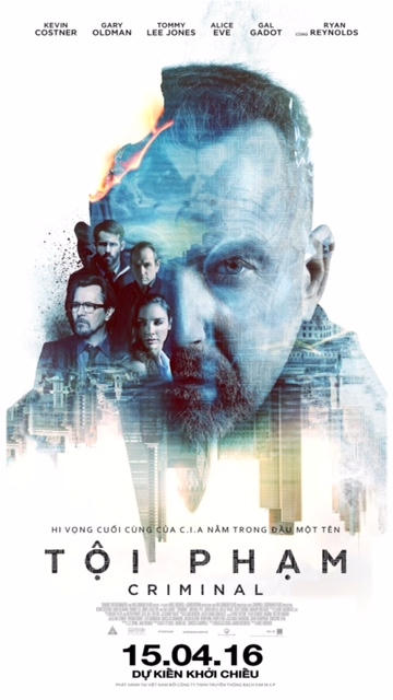 Criminal (Tội phạm) với sự quy tụ của dàn sao hạng A của Hollywood cùng những ngôi sao đã quen thuộc trên màn ảnh như Ngôi sao kỳ cựu từng đạt giải Oscar Kevin Costner, nữ diễn viên xinh đẹp người Israel Gal Gadot, Gary Oldman, Tommy Lee Jones, Jordi Molla, Jan Stroop, … là một bộ phim hành động bom tấn nghẹt thở nhất trong tháng 4 này. Bộ phim sẽ chính thức ra mắt khán giả Việt Nam từ ngày 15/4/2016 trên toàn quốc.