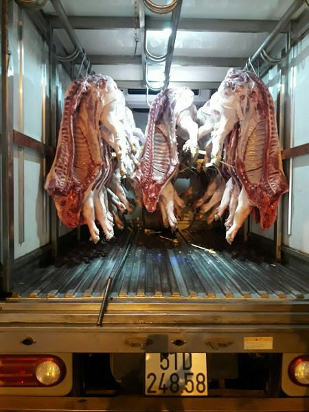 Hàng cục con heo đã được giết thịt, xẻ mảnh có các hạch sung to, xung huyết được vận chuyển từ Long An vào Sài Gòn. Cơ quan chức năng đã kịp thời phát hiện, ngăn chặn và xử lý trước khi bị đưa về các chợ, đến tay người tiêu dùng.