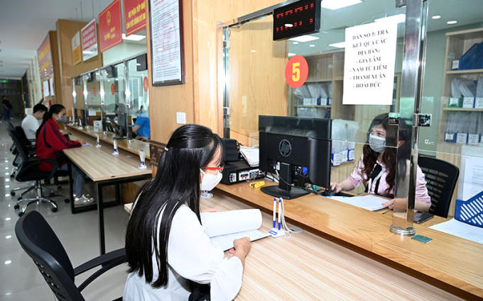 Giải quyết thủ tục hành chính cho doanh nghiệp tại Bộ phận một cửa Sở Kế hoạch và Đầu tư Hà Nội. (Ảnh DUY ĐĂNG)