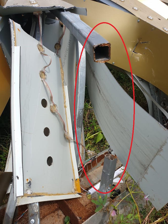 Thép ống chịu lực kém được nhà thầu sử dụng cho công trình. Sau trận giông lốc, thép gãy, điểm nối với phần đế bị nhả...