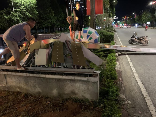 Cụ thể, tổng số cột đèn trang trí trên đoạn tuyến là 30 cột, trong đó, gãy đổ hoàn toàn 11 cột; Nghiêng, có nguy cơ gãy đổ 14 cột. Rất may thời điểm trên, phương tiện lưu thông trên đường ít, không thiệt hại về người.