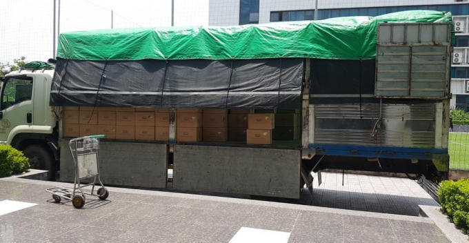 Chiếc xe ô tô tải cỡ lớn chở theo khoảng 850 thùng sữa đã bị lực lượng chức năng quận Bắc Từ Liêm bắt giữ.
