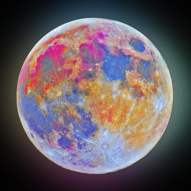 1. Dùng bộ lọc hồng ngoại và cực tím lồng vào nhau, chúng ta sẽ nhìn thấy những phần tối nhất của mặt trăng