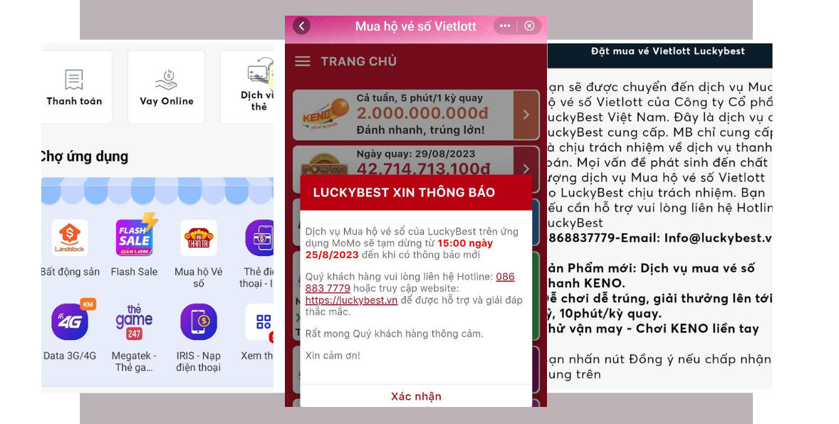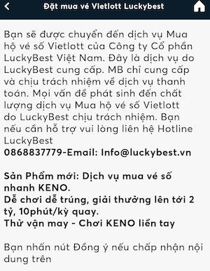 Hiện tại (tháng 9/2023) trên app ngân hàng MB Bank, vẫn hiển thị dịch vụ "Đặt mua vé Vietlott LuckyBest". Tuy nhiên, người dùng không mua được vé số.