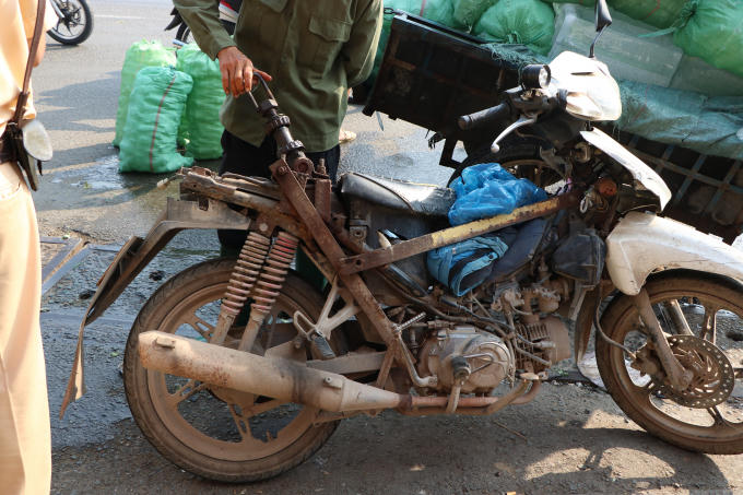 Theo ghi nhận, các xe được mời và kiểm tra đều là xe chở hàng đã cũ nát, chở hàng cồng kềnh, không đèn, không biển số,…không đảm bảo an toàn khi tham gia giao thông.