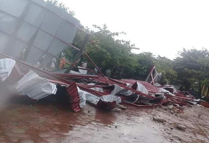 Trận lốc xoáy bất ngờ đã thổi bay mái trường học trong đêm, đồng thời khiến 10 ngôi nhà của người dân bị tốc mái.