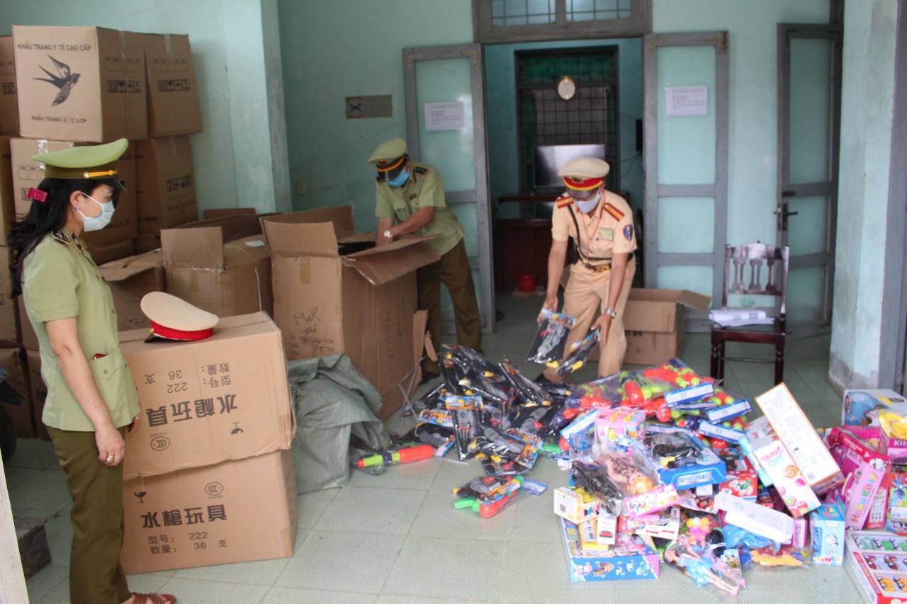Qua kiểm tra phát hiện trên xe chở 10.224 sản phẩm đồ chơi trẻ em các loại, mang nhãn hiệu nước ngoài sản xuất, không có giấy tờ chứng minh nguồn gốc cũng như hóa đơn hợp lệ và 714 sản phẩm súng nhựa thuộc danh mục hàng cấm theo quy định...tổng giá trị toàn bộ lô hàng khoảng trên 150 triệu đồng.