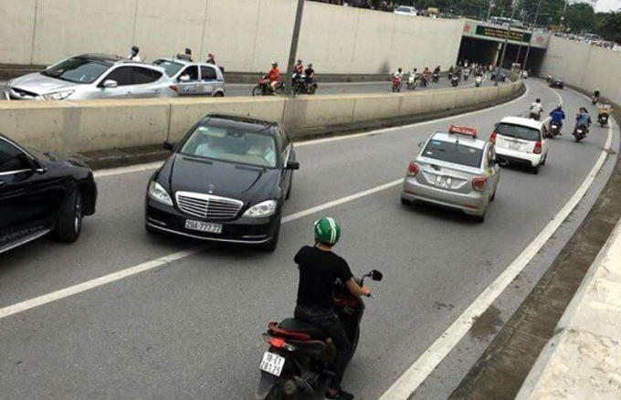 Trước đấy, trên các trang mạng xã hội xuất hiện clip ghi lại hình ảnh xe ôtô hãng Mercedes BKS 29A-777.77 đi ngược chiều trong hầm Kim Liên hướng Xã Đàn - Đại Cồ Việt, Hà Nội.