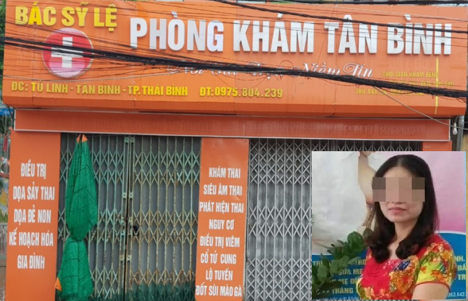Phòng khám tư nhân của bà Lệ (ảnh lớn), bà Lệ (ảnh nhỏ).