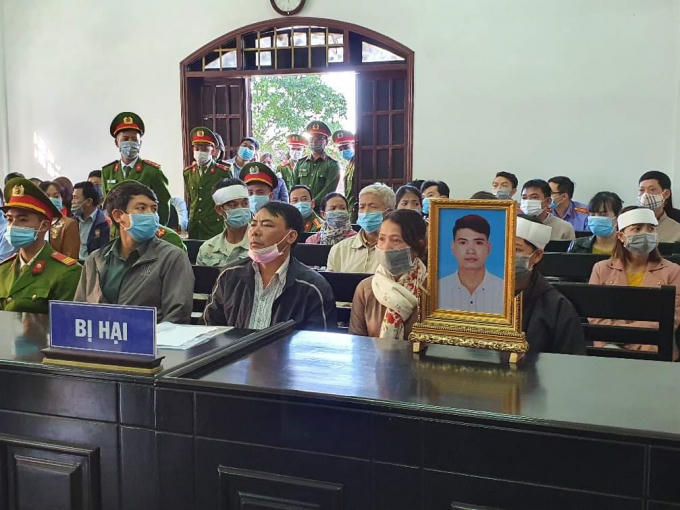 Người thân của nạn nhân mang di ảnh đến phiên tòa.