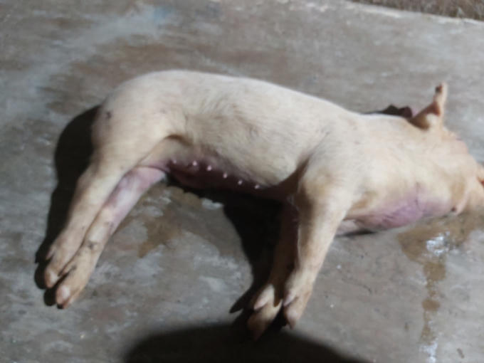 Lợn có biểu hiện bất thường rồi lăn ra chết, các trại nuôi cho biết số lợn giống này được mua ở công ty TNHH Đại Thành Lộc.