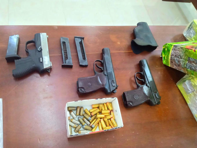 Số ma túy và súng quân dụng bị thu giữ.