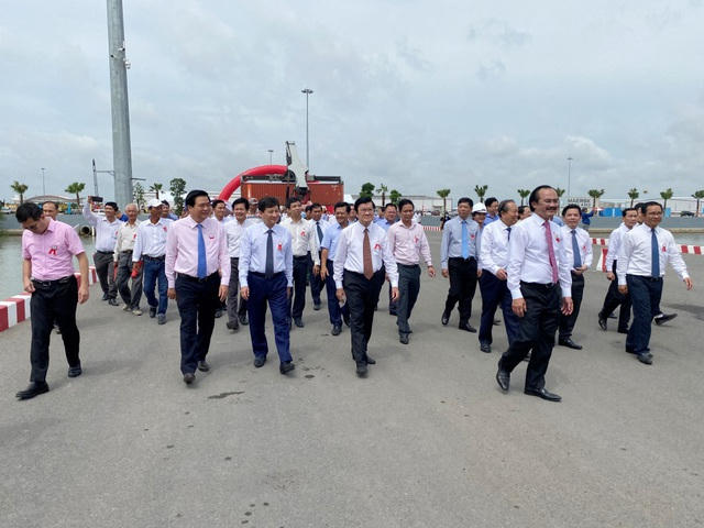 Nhiều lãnh đạo cấp cao của Trung ương và địa phương được chủ đầu tư dự án báo cáo tiến độ thực hiện Cảng quốc tế Long An. Ảnh: Đại Việt