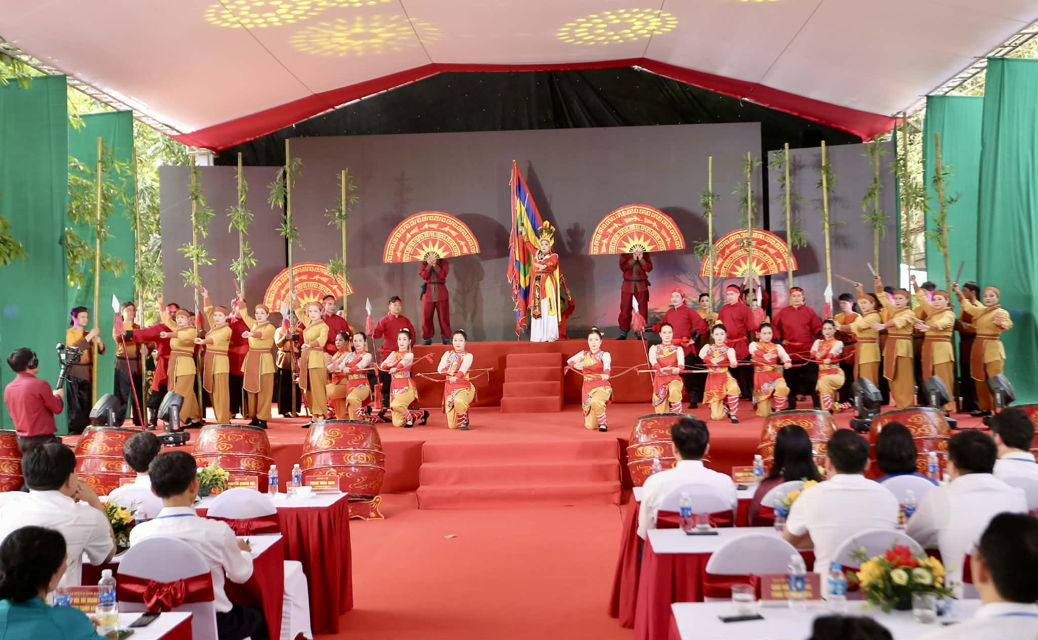 Tiếp đó là chương trình nghệ thuật sân khấu hóa quy mô, giàu tính sử thi, với chủ đề “Anh hùng dân tộc Triệu Thị Trinh - Rạng ngời trang sử vàng dân tộc”.
